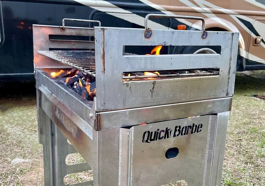 The Quick-Barbe is a all stainless steel barbecue which pitches under a minute. It makes a camp fire possible, clean and save even where it is not allowed to make fire on the ground as it stands 300mm (11.81) or 600mm (23.62) high. The unit is compact and can be stowed in a standard ammo box. Once pitched it is sturdy and when it comes to cleaning the unit, it is a matter of dumping the now cold ash, fold it away and continue with your adventure. The unit comes with a grit, carry bag and a wind deflector. This unit is a must for the adventurer or overlander.
