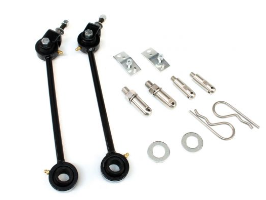 TeraFlex Front Sway Bar Quick Disconnects are the industry leader thanks to their ease of use. The Sway Bar Links quickly disconnect and swing up out of the way for unrestricted axle articulation during off-roading. While connected for street use, the link provides immediate reaction during sway bar loading to eliminate excess play. This results in improved lateral control and steering response compared to the stock rubber sway bar link bushings. The lower sway bar link end features a large polyurethane ball that slides over a stainless-steel pin for easy sway bar link removal.